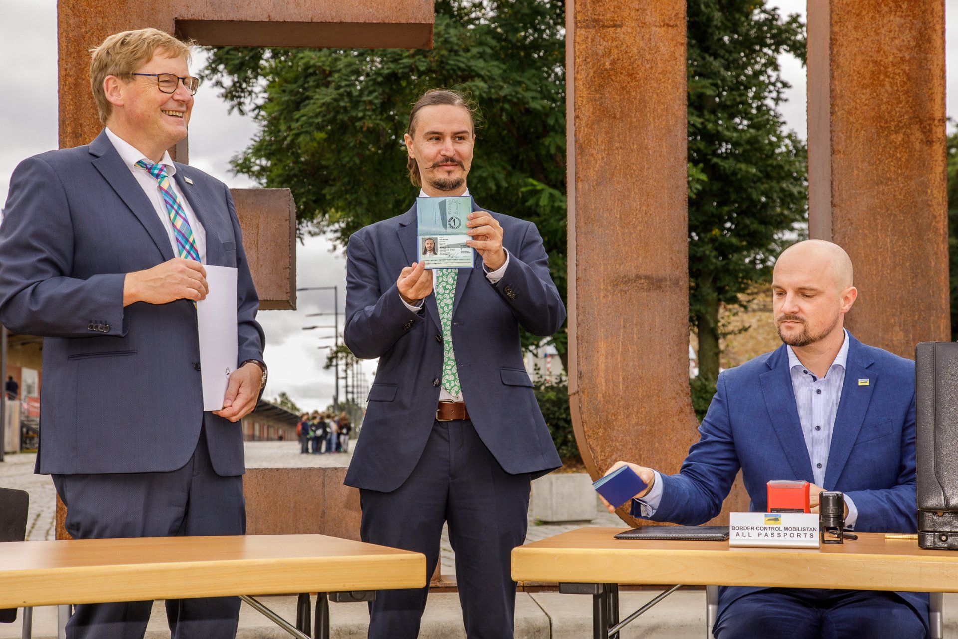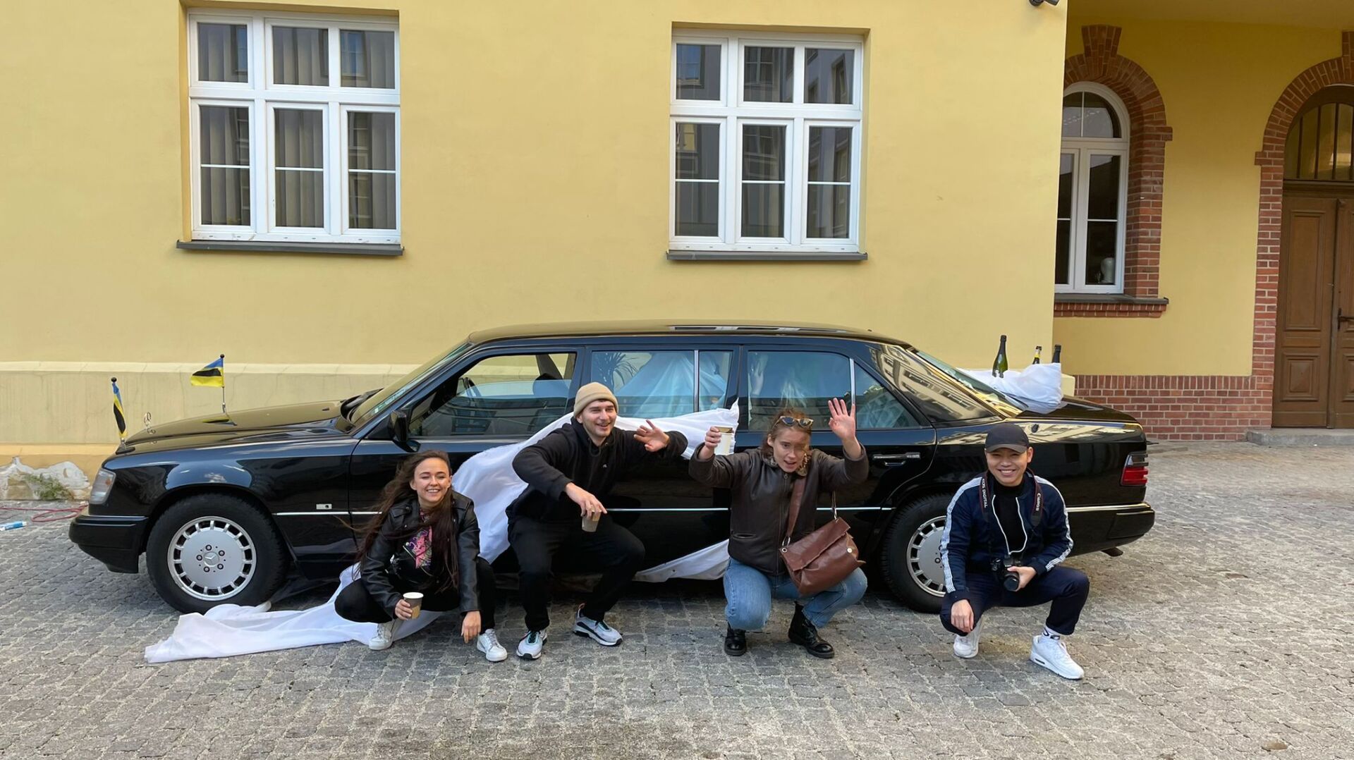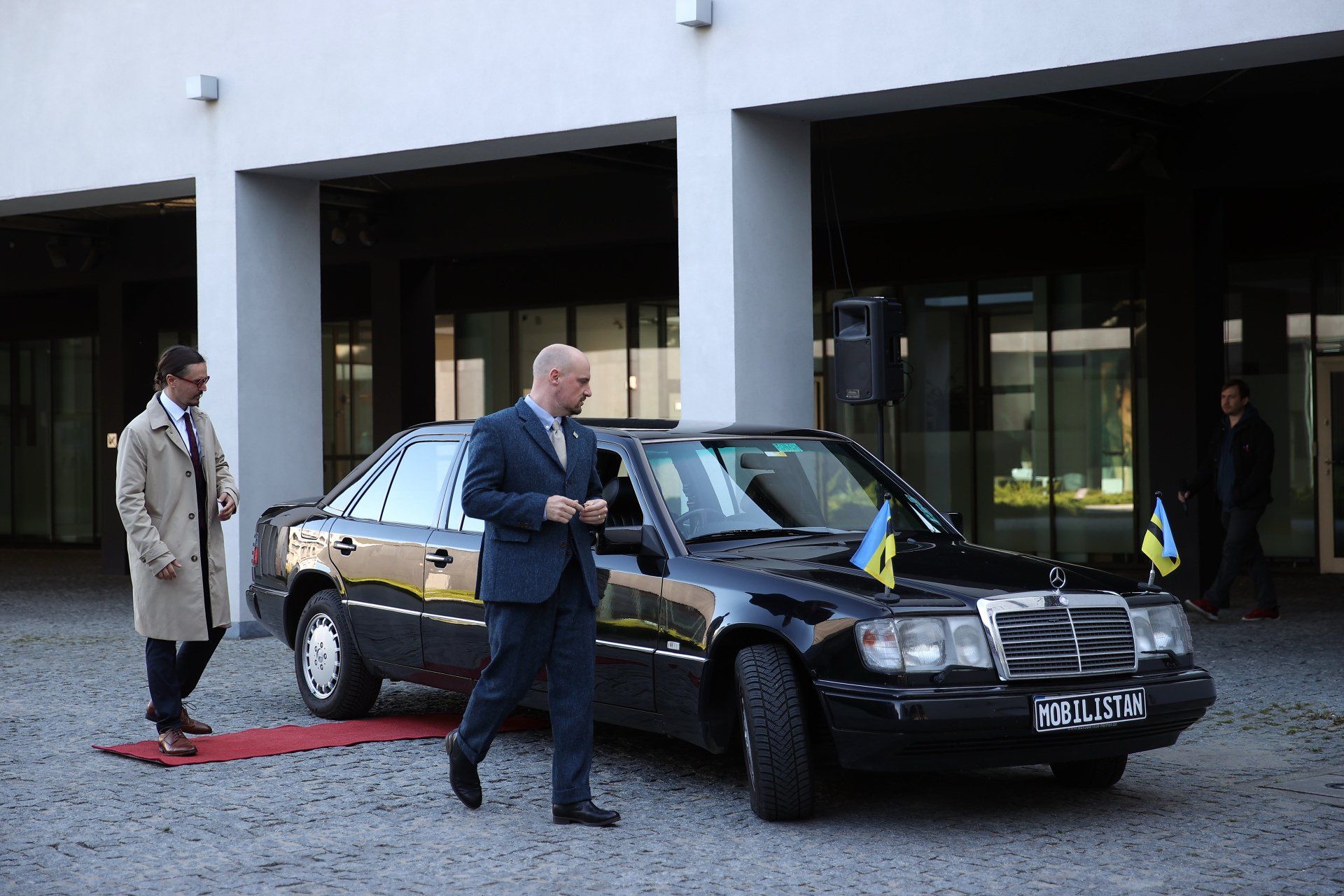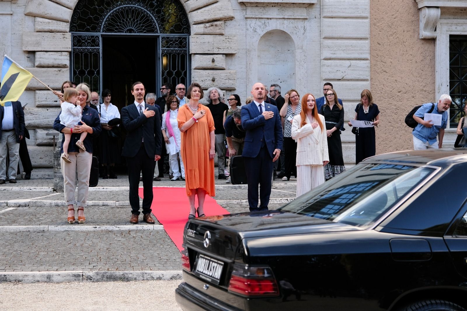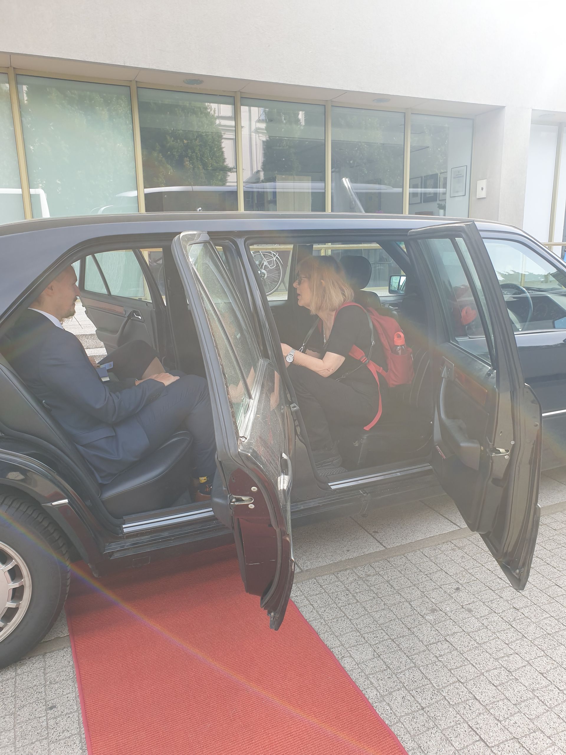 Our project MOBILISTAN is to be understood as a purely ART PROJECT dealing with issues of mobility, territorial limits, recognition, marginalization, freedom to travel and the desire to belong. Mobilistan is established on the area of a state limousine, thus forming the territory that can be entered or exited through the doors of the vehicle. Mobilistan has its own flag, anthem and passport. There are four permanent residents of Mobilistan, playing simultaneously several roles like State President, Foreign Secretary, Minister of Finance, Interior Minister etc. The four permanent residents are: Barbara Repe, Anne Manss, Manaf Halbouni and Christian Manss. They will determine the fortunes of Mobilistan: who is allowed to become a citizen, who gets a visa or where is the temporary location of Mobilistan.