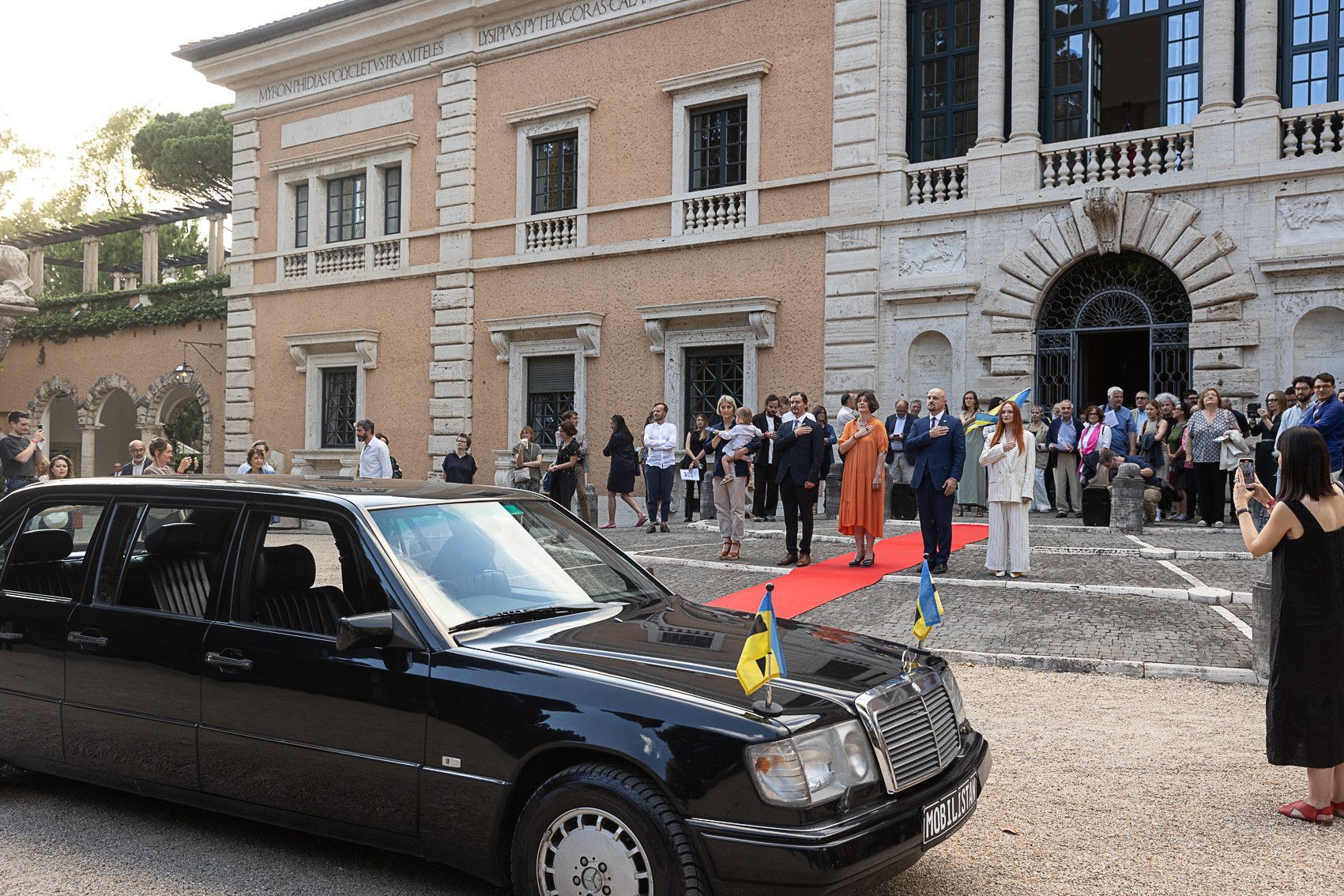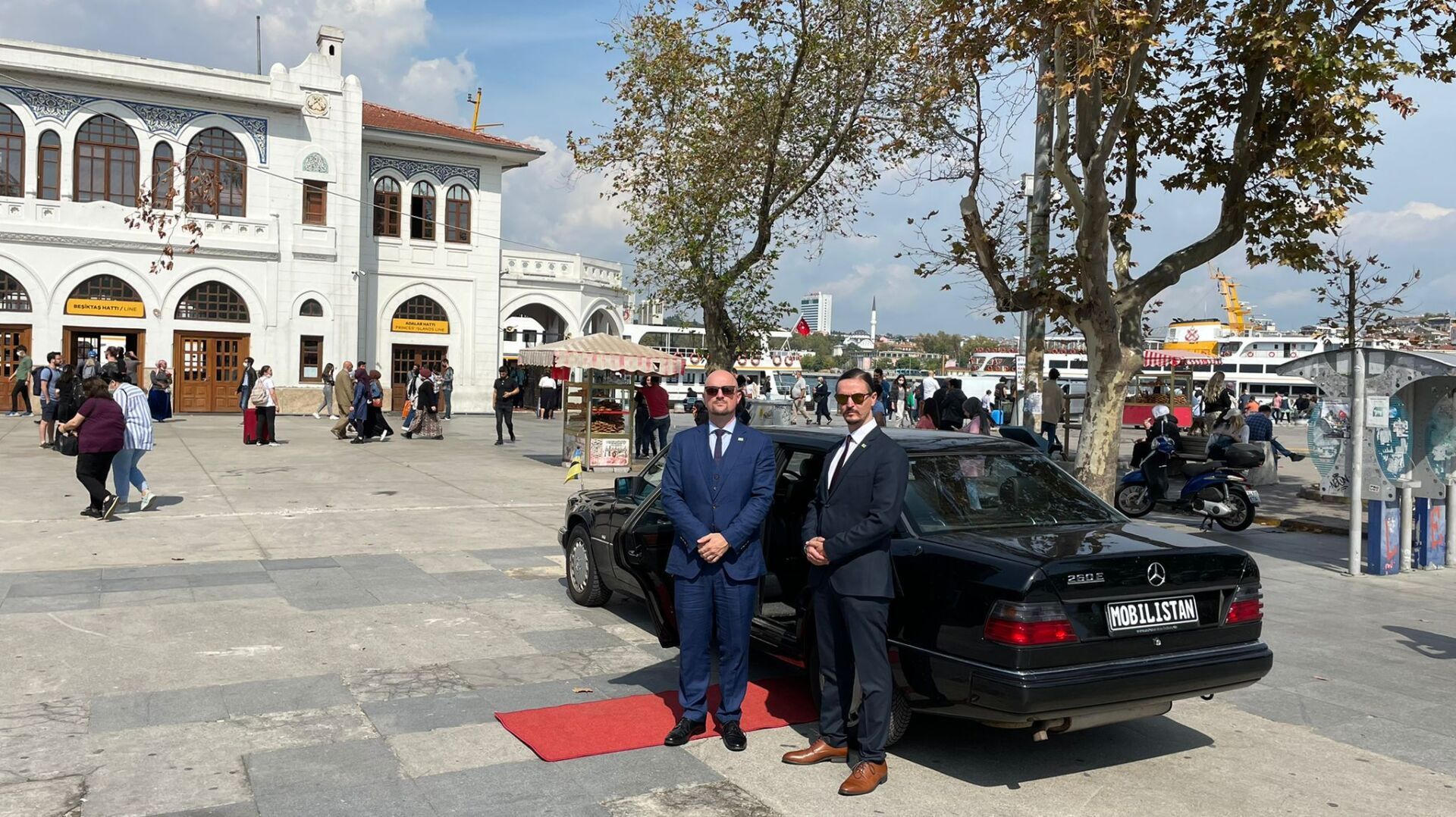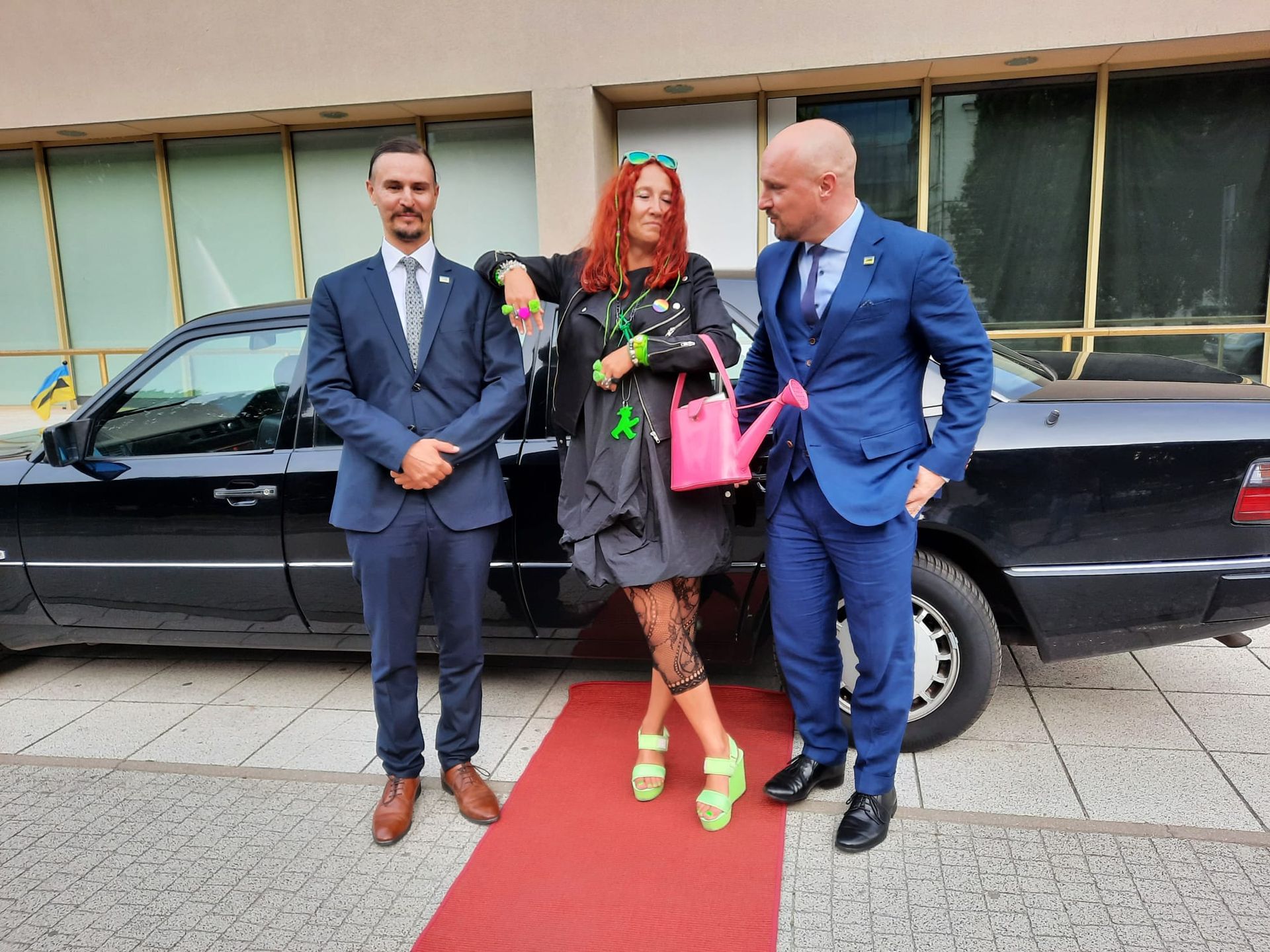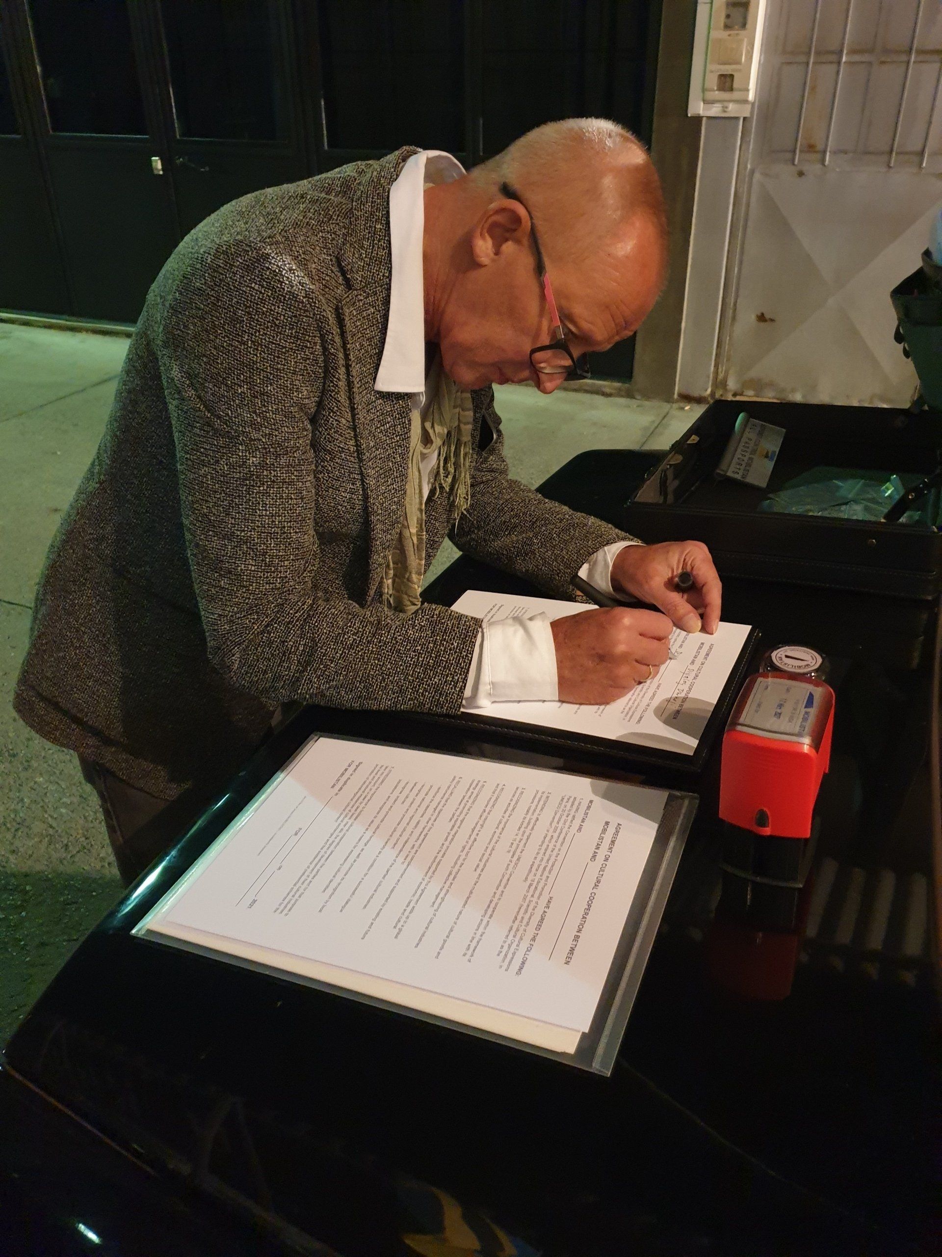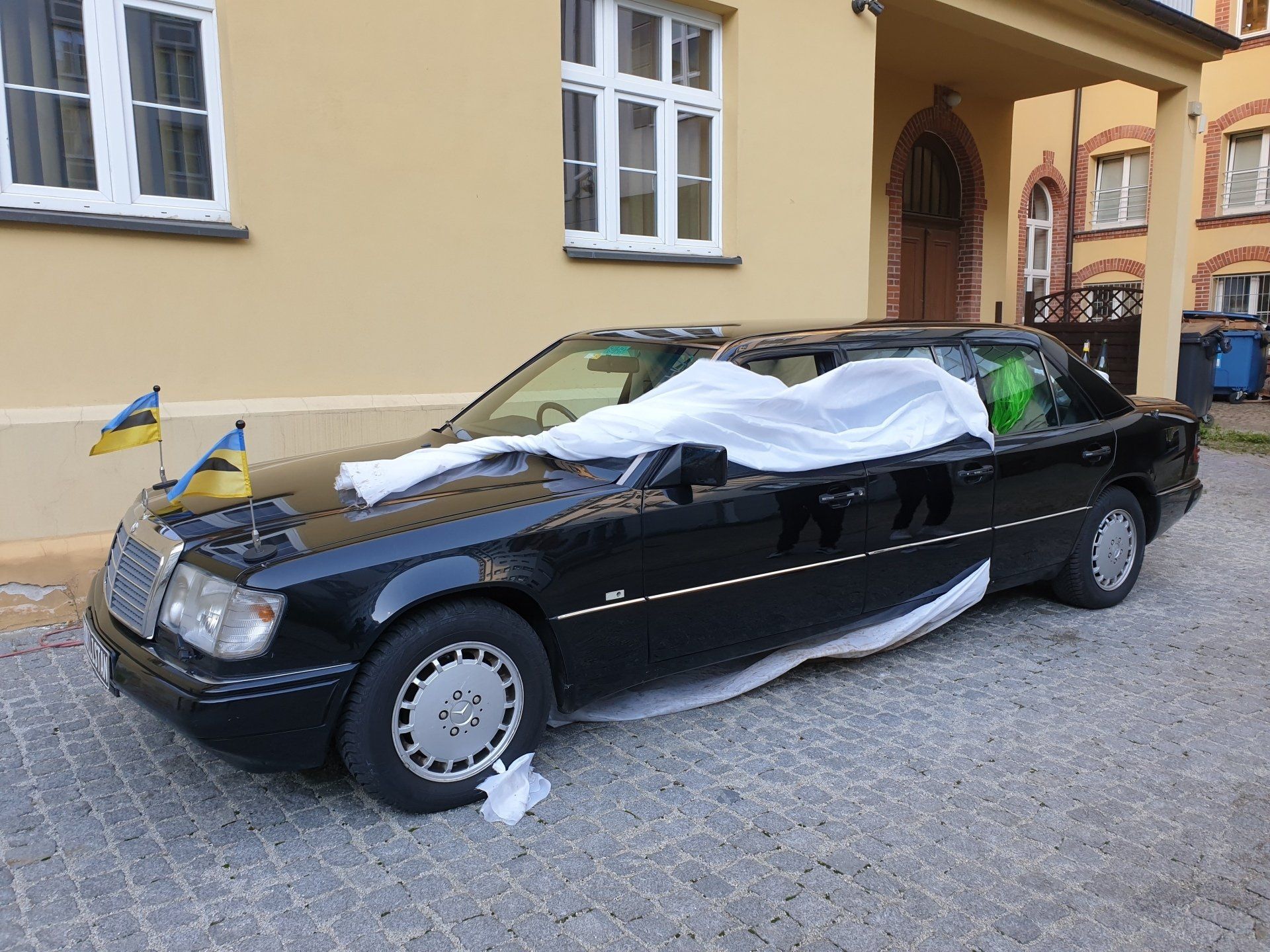Our project MOBILISTAN is to be understood as a purely ART PROJECT dealing with issues of mobility, territorial limits, recognition, marginalization, freedom to travel and the desire to belong. Mobilistan is established on the area of a state limousine, thus forming the territory that can be entered or exited through the doors of the vehicle. Mobilistan has its own flag, anthem and passport. There are four permanent residents of Mobilistan, playing simultaneously several roles like State President, Foreign Secretary, Minister of Finance, Interior Minister etc. The four permanent residents are: Barbara Repe, Anne Manss, Manaf Halbouni and Christian Manss. They will determine the fortunes of Mobilistan: who is allowed to become a citizen, who gets a visa or where is the temporary location of Mobilistan.