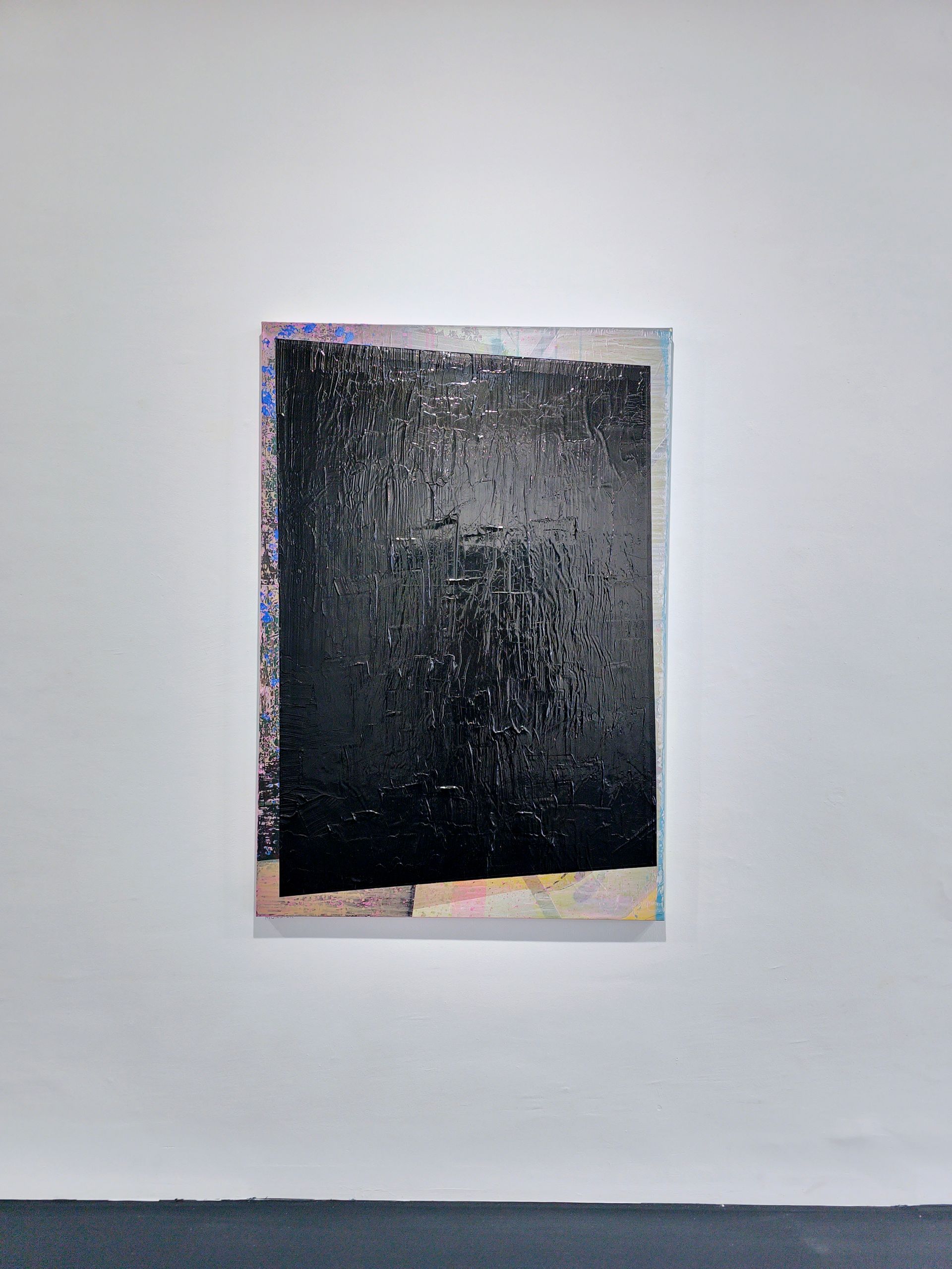 Sprache ist schon immer ein Teil der Arbeit von Christian Manss und das Wort bekommt noch mehr Raum. Das Spannungsfeld zwischen dem malerisch verstellten Blick auf eine mit Worten generierte Szenerie und dem undefinierten, abstrakten Werk ist der Kern dieser Serie. Dabei ist Manss die kunsthistorische Nähe zu Künstlern wie Arnulf Rainer, Günther Brus oder Gerhard Richter bewusst und wichtig.