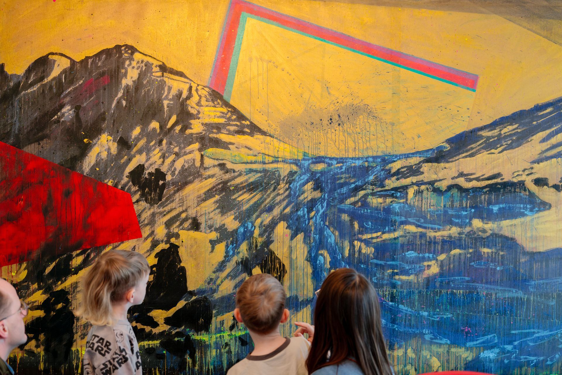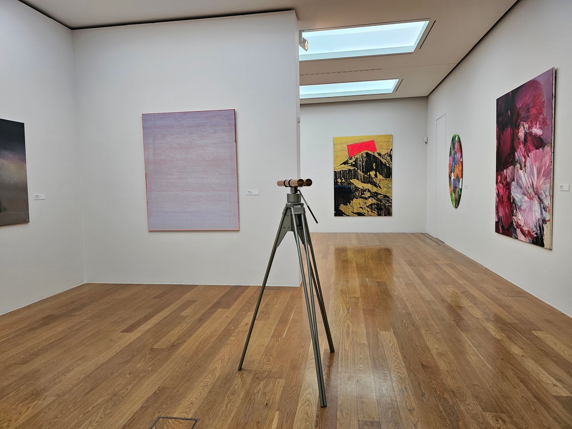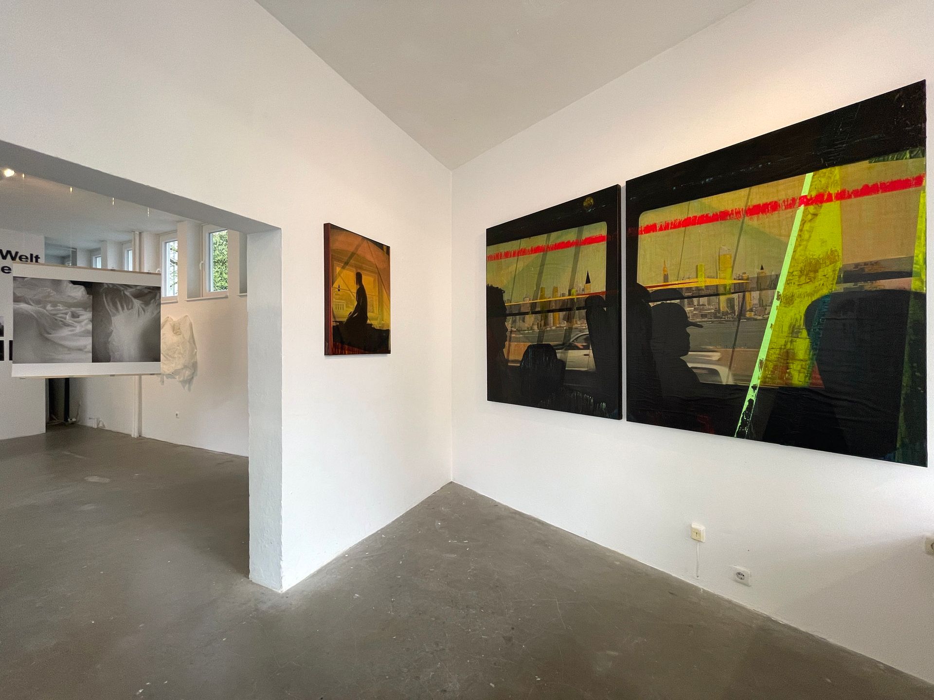 Was die Werke neben dieser Frage eint, ist der differenzierte Einsatz der Farbe Gelb. Sie ist die Farbe mit der größten Strahlkraft sowie Signal- und Fernwirkung. Von den warmen Farben ist sie die am wenigsten greifbare und die unwirklichste. Unser Verhältnis zu dieser Farbe ist ebenso ambivalent wie zu den gezeigten Bildinhalten. Gelb bewegt sich im europäischen Wirkungsraum zwischen Schandfarbe und göttlicher Zuordnung.