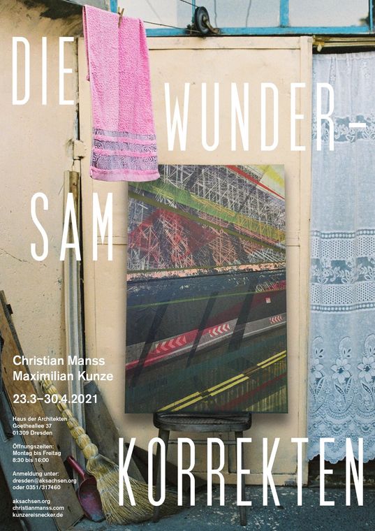 “Margaritas im Herbst” – Was soll das sein? Es wirkt fremd und deplatziert. Ein mexikanischer Sommer-Cocktail Ende Oktober in Chemnitz? Dieser Titel beschreibt ziemlich genau die Lebenssituation der beiden international vielbeschäftigten und dennoch in Dresden lebenden Künstler Manaf Halbouni und Christian Manss. Der deutsch-syrische Bildhauer und Installationskünstler Manaf Halbouni hat allein in den letzten 3 Jahren Projekte auf Cuba, in den USA, der Schweiz, Österreich, Polen, England, Schottland, Belgien, Italien, Malta, Griechenland und Deutschland verwirklicht. Sein bevorzugtes Material ist Beton und sein liebster Raum ist der öffentliche. Für die gemeinsame Ausstellung mit dem thüringischen Maler Christian Manss, dessen collagenartige, vielschichtige Arbeiten oft auch bei Künstleraufenthalten in anderen Ländern entstehen, hat Halbouni extra Arbeiten für die Räume der Galerie entwickelt. Diese beschäftigen sich, ebenso wie die Werke von Manss, mit der Suche nach Zugehörigkeit und Identifikationssymbolen unserer Zeit. Der in Dresden wohnhafte Christian Manss ist ebenso ein Wanderer zwischen den Welten. “Kommt Ihr oder geht Ihr?” ist die häufigste Frage, die ihm gestellt wird. Von 2015 bis heute hat er in Südkorea, den USA, der Schweiz, Frankreich, Österreich, England, Montenegro, Polen, Mexiko und Deutschland ausgestellt und gearbeitet. Was beide Künstler neben einer Freundschaft verbindet, ist diese Beobachterrolle - nie ganz dazu zu gehören und trotzdem dabei zu sein. Aus diesem Umstand schöpfen ihre Werke die Kraft zwischen Nähe und Distanz.